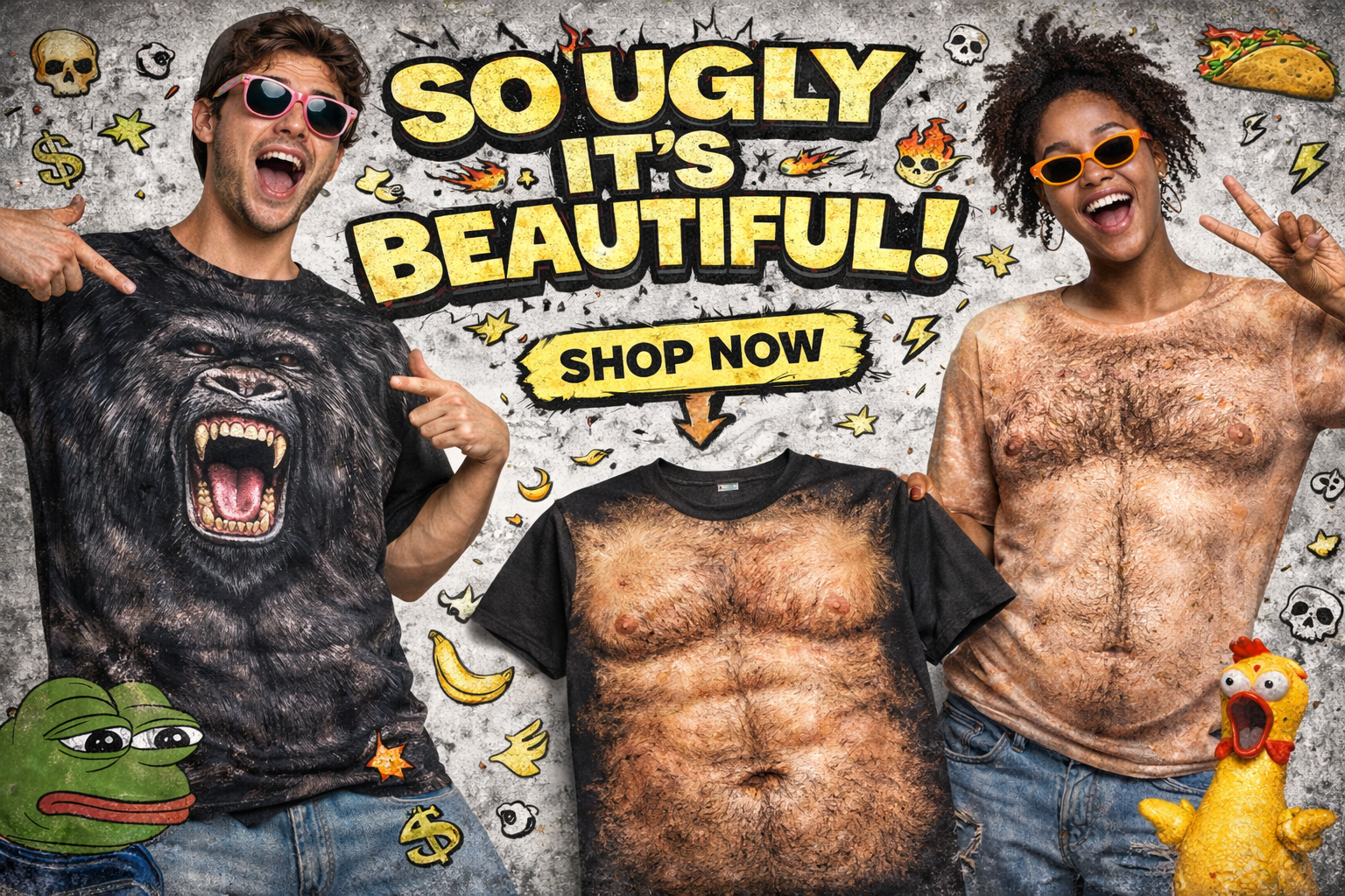Bizarre never looked so good! Our shirts are a canvas for your personality, ensuring you stand out for all the right (and wrong) reasons.